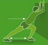 - Kalça hareketliliğinin iyileştirilmesi için ileriye doğru geniş bir adım atınız. Vücudunuzu öne doğru bükerek dizinizin üzerine eğilin. El ve direseklerinizi yere koyarak gerdirme yapınız. Bu işlemi diğer bacağınız içinde yapınız.
